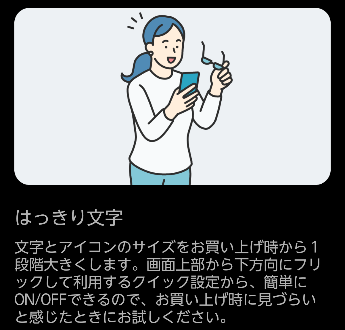 はっきり文字機能は本当に鮮明に文字が見えます。私は斜視持ちなので文字が歪みますが。この機能を使うとかなり見やすくなります。一度実物で確認して欲しい機能です