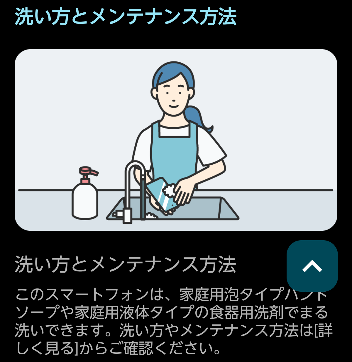アローズアルファでしか見たことが無い。スマホの洗い方の説明を見れます。他のスマホにはない機能なのでスマホを綺麗にしたいかたは洗いましょう